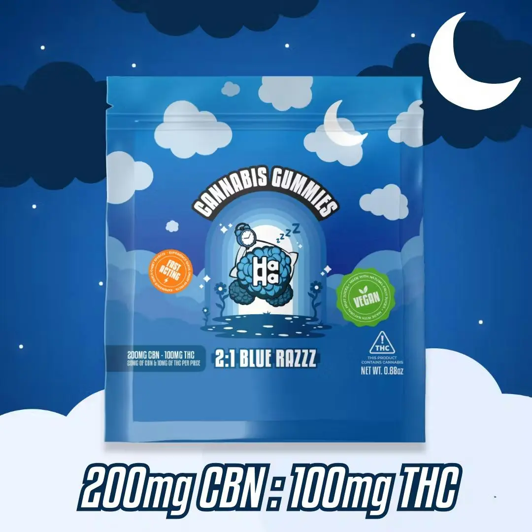 HaHa Blue Razz Gummies 2:1 200mg CBN:100mg THC 10pk